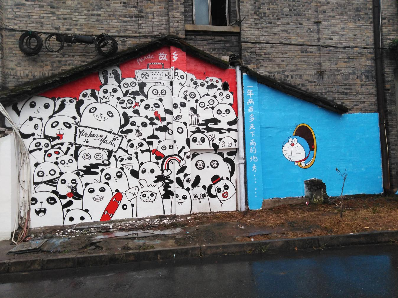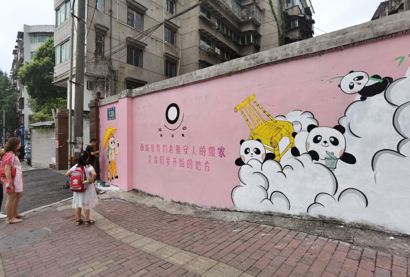 二是公開征集樣板作品。以“為愛而繪·涂鴉先鋒”為主題,為征集來的墻面免費彩繪。老西城縣前街一墻面陳舊,墻繪師將大熊貓和哆啦A夢結合,圖文并茂、通俗易懂,表達“熊貓老家在雨城”。土橋社區(qū)雅安城市音樂廳外墻面破損,墻繪師大膽選用粉紅色調,“雅雅安安的音樂會”與周邊環(huán)境反差萌,吸引無數(shù)市民打卡拍照。