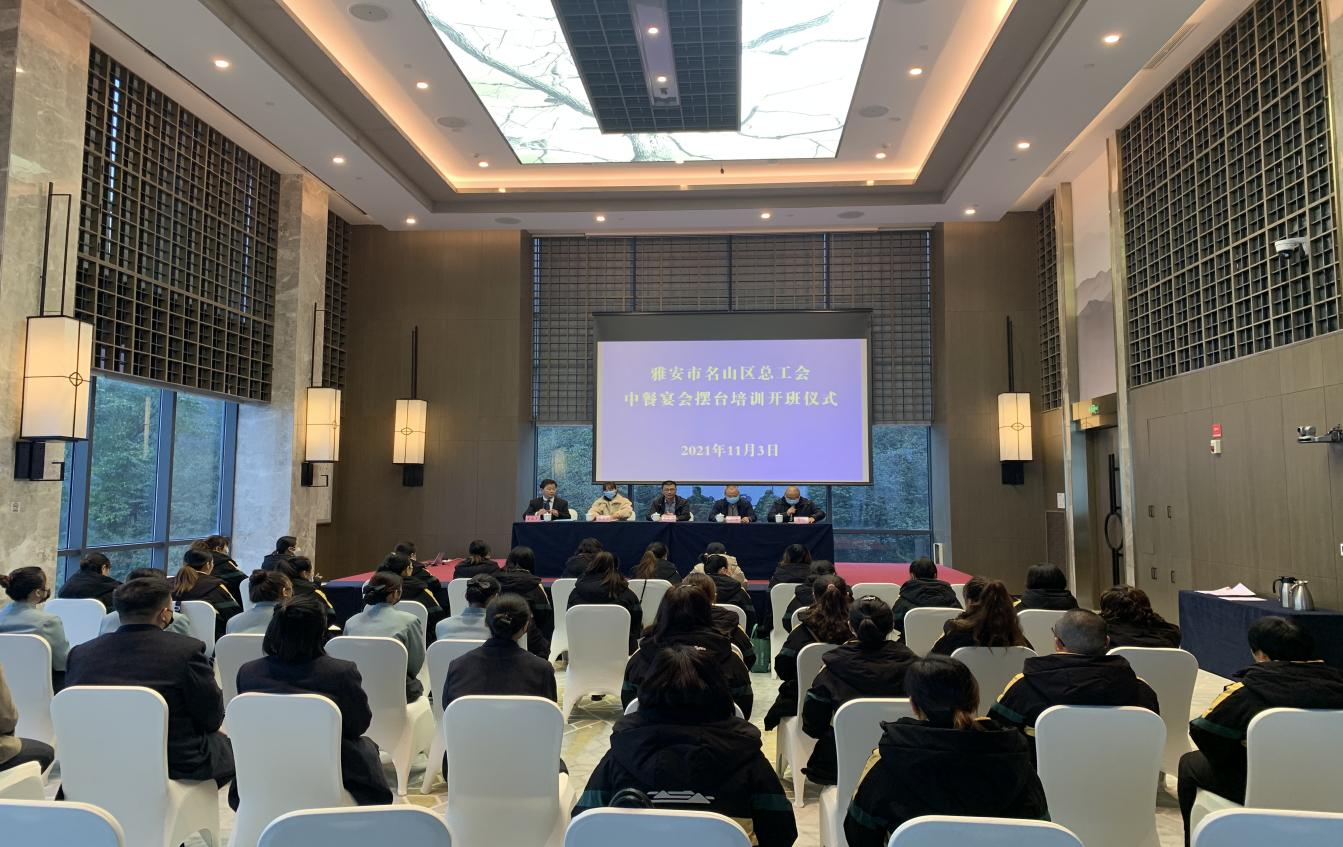 2021年省總工會(huì)專項(xiàng)幫扶服務(wù)項(xiàng)目 “餐廳宴會(huì)擺臺(tái)”培訓(xùn)開(kāi)班儀式在蒙頂山假日酒店舉行